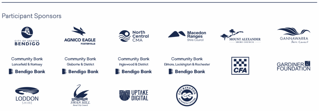 The Victorian Government was the principle partner of LEAD Loddon Murray and major financial supporter of the Loddon Murray Community Leadership Program for a number of years. The Victorian Government, through Regional Development Victoria has invested in the capability and capacity of regional leaders as it understands the critical role leaders play in building vibrant and sustainable communities. Our partnership with the Victorian Government led to LMCLP Graduates playing a key role in engaging communities in critical policy issues, evident in Regional Assemblies, agriculture round tables and rural women’s networks.